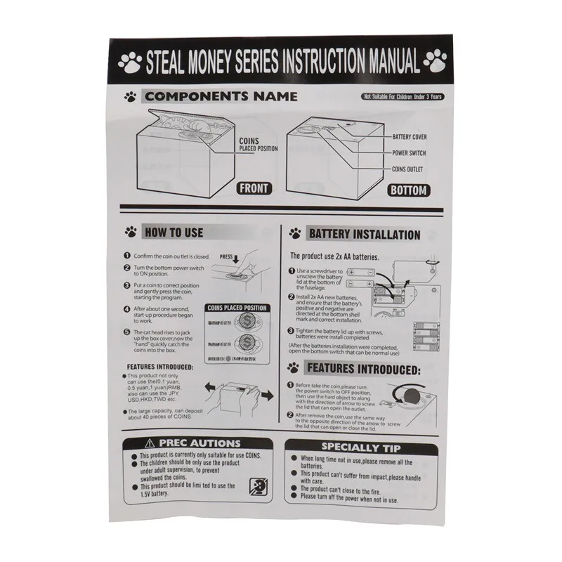 Attention: This product comes with a manual that does not include batteries. Please purchase 2 AA batteries yourself.